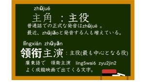 廣東語で 領衛主演 lling5wai6 zyu2jin2 リンウェイジュジン 。